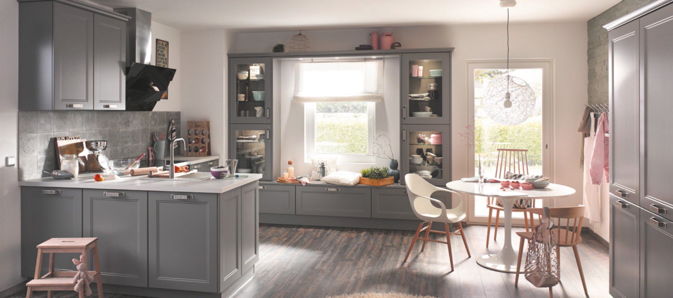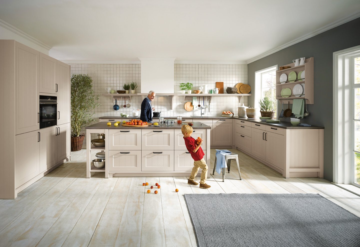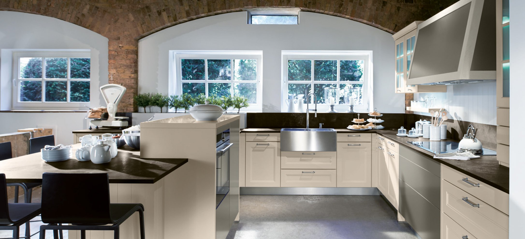 Nostalgisch und mit modernem Komfort fasziniert die Landhausküche durch ihren traditionellen Charakter und lädt zum Träumen ein. Durch die landhaustypischen Accessoires wie Kranzprofile, Lichtblende und der gemauerten Dunsthaube kombiniert mit warmen Farben und natürlichen Materialien wird die Küche zu einem Wohlfühlort mit einem ganz besonderen Charme. Rustikale Fronten aus Holz oder Lack und das Spiel mit Facetten oder Riemchen erzeugen zusammen mit mediterran gestalteten Details ein angenehmes Flair. Auf den Komfort in einer Landhausküche muss allerdings keinesfalls verzichtet werden, denn auch die neuesten Elektrogeräte und technisch Raffinessen finden hier Ihren Platz.